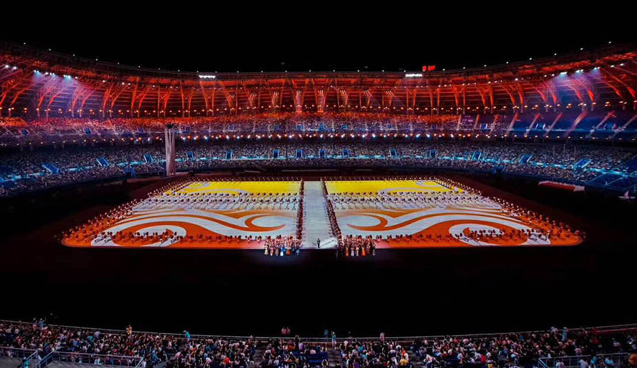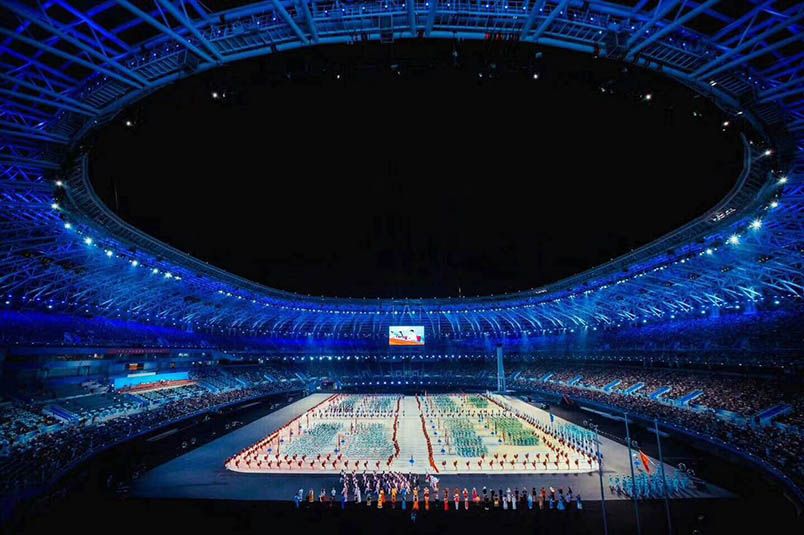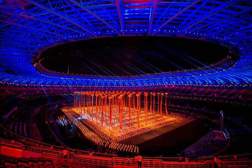 開幕式的亮點,一是3D地面投影和人完美配合的視覺效果;二是體育和群眾元素的相結合;三是以天津元素講述中國故事、展示中國氣派。這其中,最大亮點是開幕式上全程全屏激光投影的使用,加上與表演者的動態(tài)有機結合,以及與場外高大建筑燈光秀的合成,讓本屆全運會的開幕式在畫面上呈現(xiàn)出如夢如幻的美妙感覺。